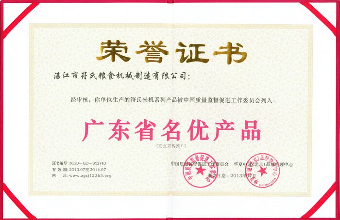 3 2013年被授予“符氏米機(jī)系列產(chǎn)品被中國質(zhì)量監(jiān)督促進(jìn)工作委員會(huì)列入:廣東省名優(yōu)產(chǎn)品”榮譽(yù)證書