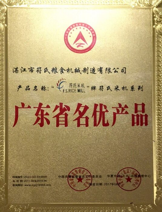1 2017年產(chǎn)品名稱符氏米機(jī)F.S. RICE MILL符氏米機(jī)牌系列被授予“廣東省名優(yōu)產(chǎn)品”榮譽(yù)牌匾